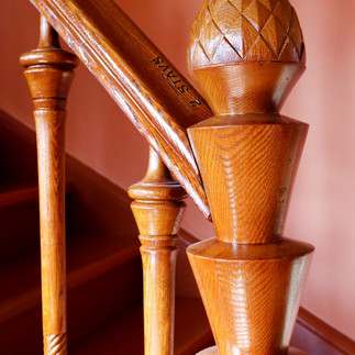 Mani fascinē Svētku zāles griesti, kas izskatās pēc īsta meistardarba, kā arī durvis, kuru slīpētie stikli atgādina kristālu. Stikli saules staros grezni mirdz, tik skaisti! Nacionālā romantisma interjeri, koka intarsijas un pārmērīgs koka detaļu pielietojums telpu apdarē man nekad nav gājis pie sirds, taču nevaru noliegt, ka zāle izskatās riktīgi iespaidīgi, kaut arī nav manā gaumē. Siguldas Jaunā pils ir detaļām bagāta, spēj tik’ skatīties un brīnīties! Pat kolonnu kapiteļos starp klasiskiem motīviem slejas lepnu tautumeitu galvas.